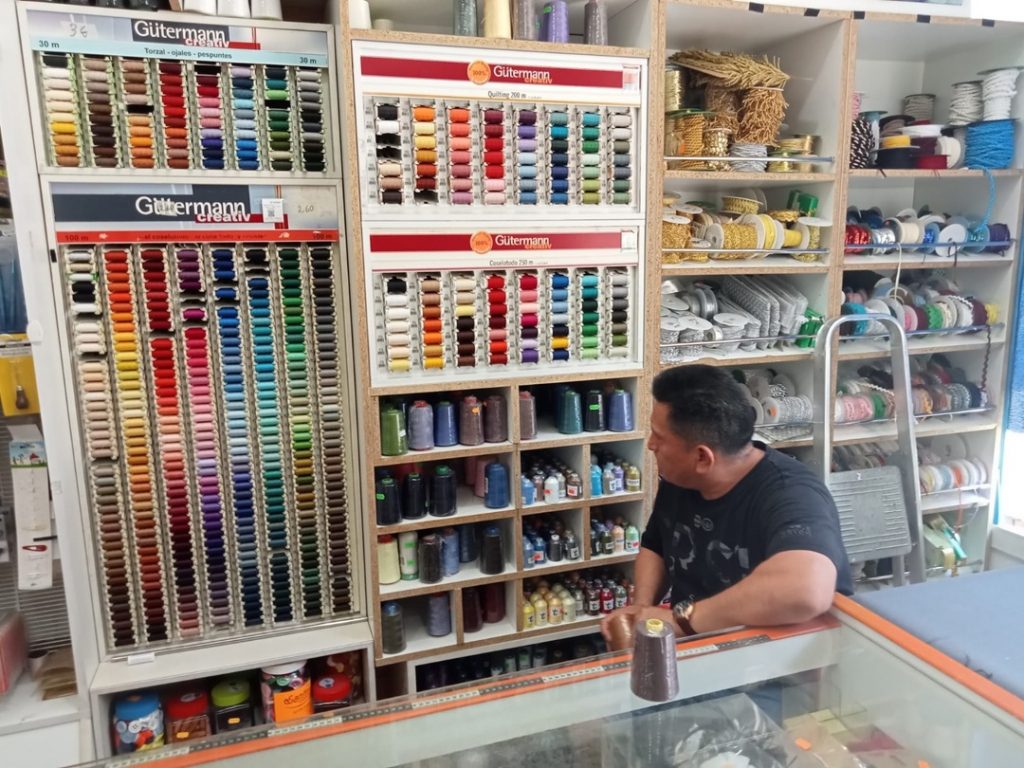 Así las cosas, fuimos creando el primer bolso con los materiales que teníamos guardados en casa y en cuanto pudimos salir a la calle, nuestra primera parada fue en las tiendas de telas y mercerías de barrio y las del centro de Madrid como Ribes y Casals, Tejidos del Centro, Tejidos Paredes, entre otras.
