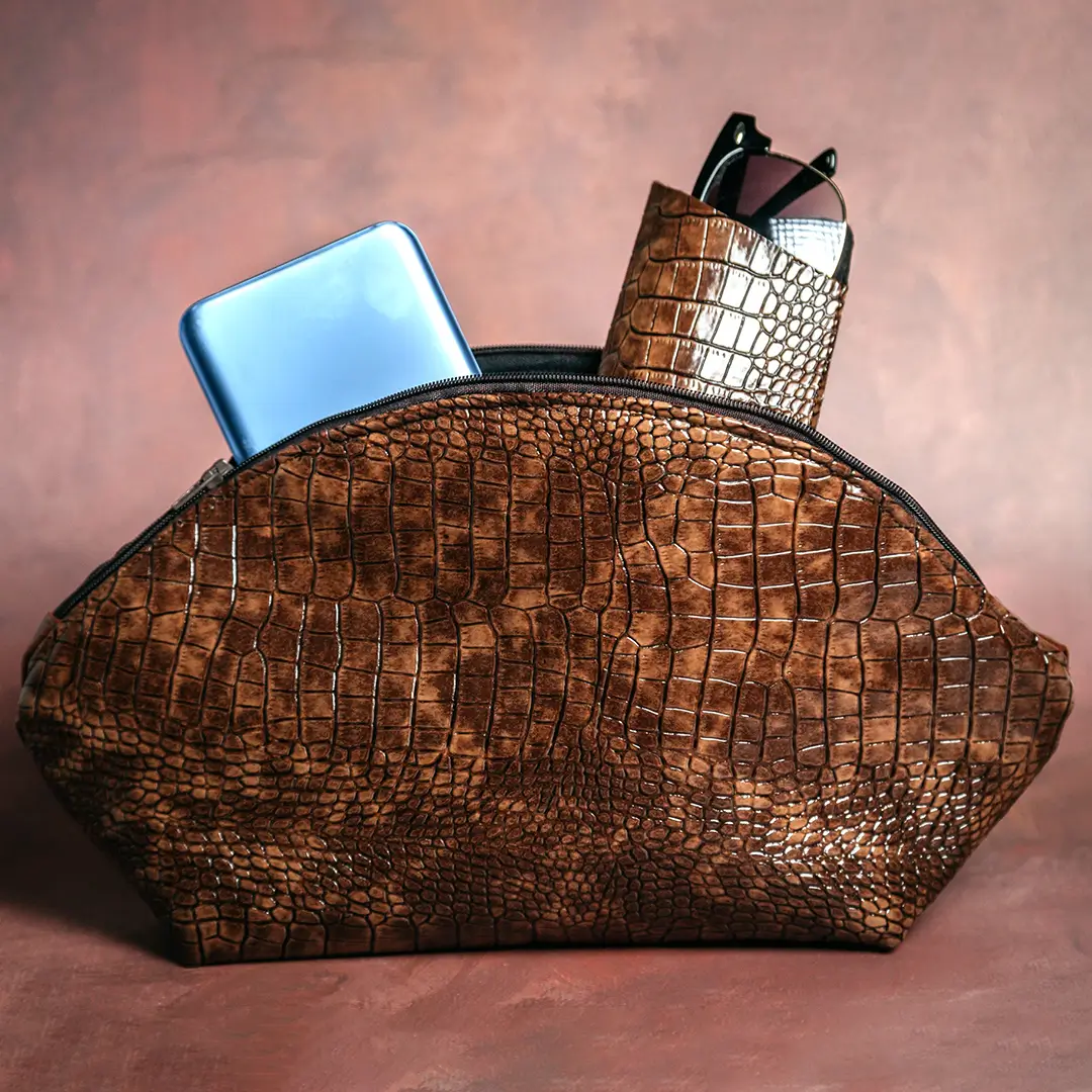 Con estas combinaciones de materiales lisos y con relieves que imitan la piel de cocodrilo, confeccionamos nuestras colecciones y accesorios Bolso de mano Bahía 3 (1). Una línea para mujeres Bolsos Rosell y otra para hombres Imperio Men Bolsos de hombre . Los artículos de mujeres destacan por sus llamativos colores marrones y negro. La colección masculina se confeccionó utilizando tres colores. Todos con una gama de tonos marrones, verde y granate, a juego unas fundas para gafas.