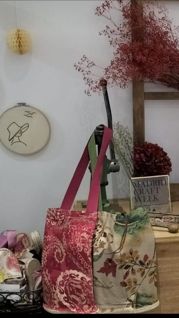 Aprendimos el punto de coser las alpargatas a partir de esa pequeña bolsa, aprovechamos los trozos de telas para personalizar las nuestras. Compramos las suelas en Casa Hernanz https://casahernanz.es, un establecimiento centenario de Madrid de alpargatería y cordelería, donde puedes encontrar todo tipo de alpargatas y todos los materiales necesarios para confeccionar las tuyas como hemos hecho nosotras.