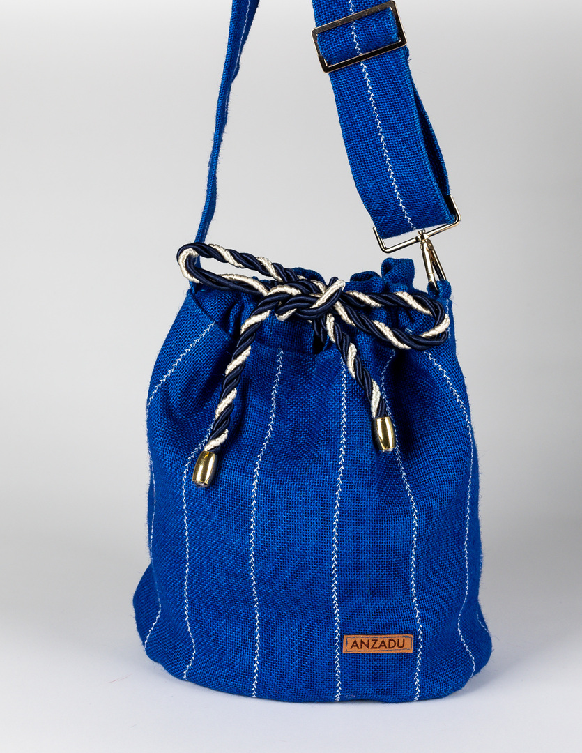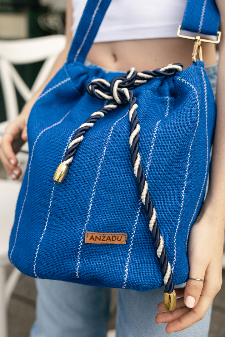 Destaca no solo por su diseño único y su artesanía, sino también por la comodidad que ofrece en el uso del día a día. Así es nuestro Bolso de yute Salei azul. Elaborado en tejido de yute, teñido con tintes naturales y tela de raso en su interior, le otorga un toque de funcionabilidad y autenticidad perfecto para combinar con cada uno de tus outfits. Cada bolso está diseñado pensando en la mujer moderna, práctica y amante de los detalles. La combinación de colores que tiene su cordón entrelazado y las líneas bordadas en la tela hechas de manera artesanal, le aportan un soplo de aire fresco a nuestra colección. En Anzadu, trabajamos con materiales de alta calidad para garantizar la durabilidad y el estilo. Haz de esta primavera una temporada inolvidable.