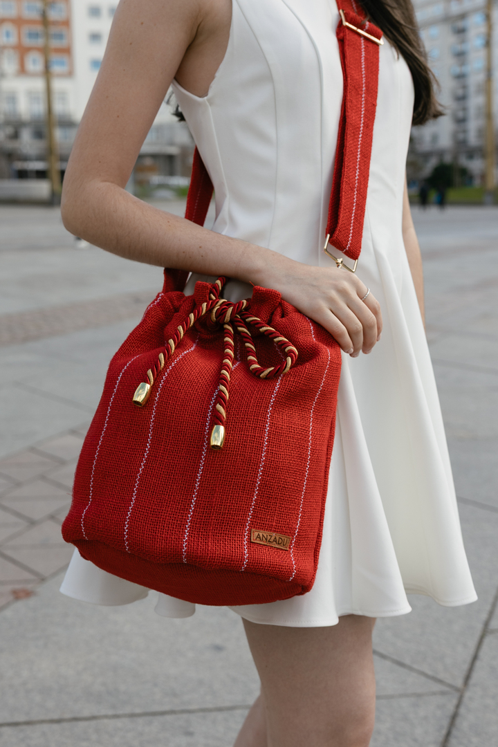 Destaca no solo por su diseño único y su artesanía, sino también por la comodidad que ofrece en el uso del día a día. Así es nuestro bolso de yute Salei rojo. Elaborado en tejido de yute, teñido con tintes naturales, y tela de raso en su interior, le otorga un toque de funcionabilidad y autenticidad perfecto para combinar con cada uno de tus outfits. Cada bolso está diseñado pensando en la mujer moderna, práctica y amante de los detalles. La combinación de colores que tiene su cordón entrelazado y las líneas bordadas en la tela hechas de manera artesanal, le aportan un soplo de aire fresco a nuestra colección. En Anzadu, trabajamos con materiales de alta calidad para garantizar la durabilidad y el estilo. Haz de esta primavera una temporada inolvidable.