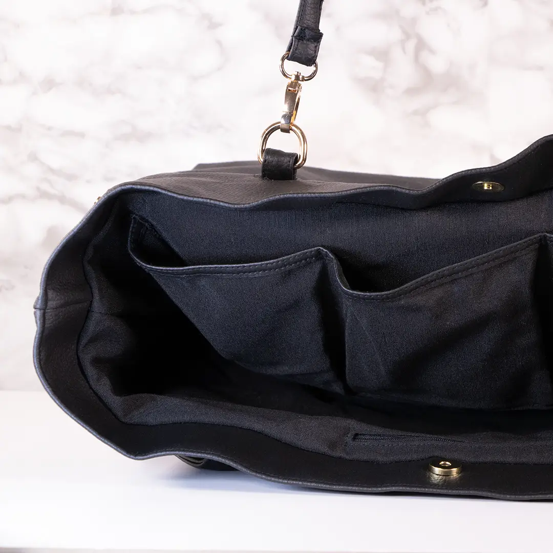 El Bolso Rosell de color negro es espacioso. En su interior cuenta con tres bolsillos consecutivos con una cuidadosa disposición y otro con cremallera con el que puedes mantener todo organizado. Sus broches laterales le proporcionan más espacio para guardar artículos de mayores dimensiones de las habituales, como por ejemplo un ordenador si fuera el caso. Descubre nuestro Bolso Rosell negro dentro de nuestra colección Otoño-Invierno.
