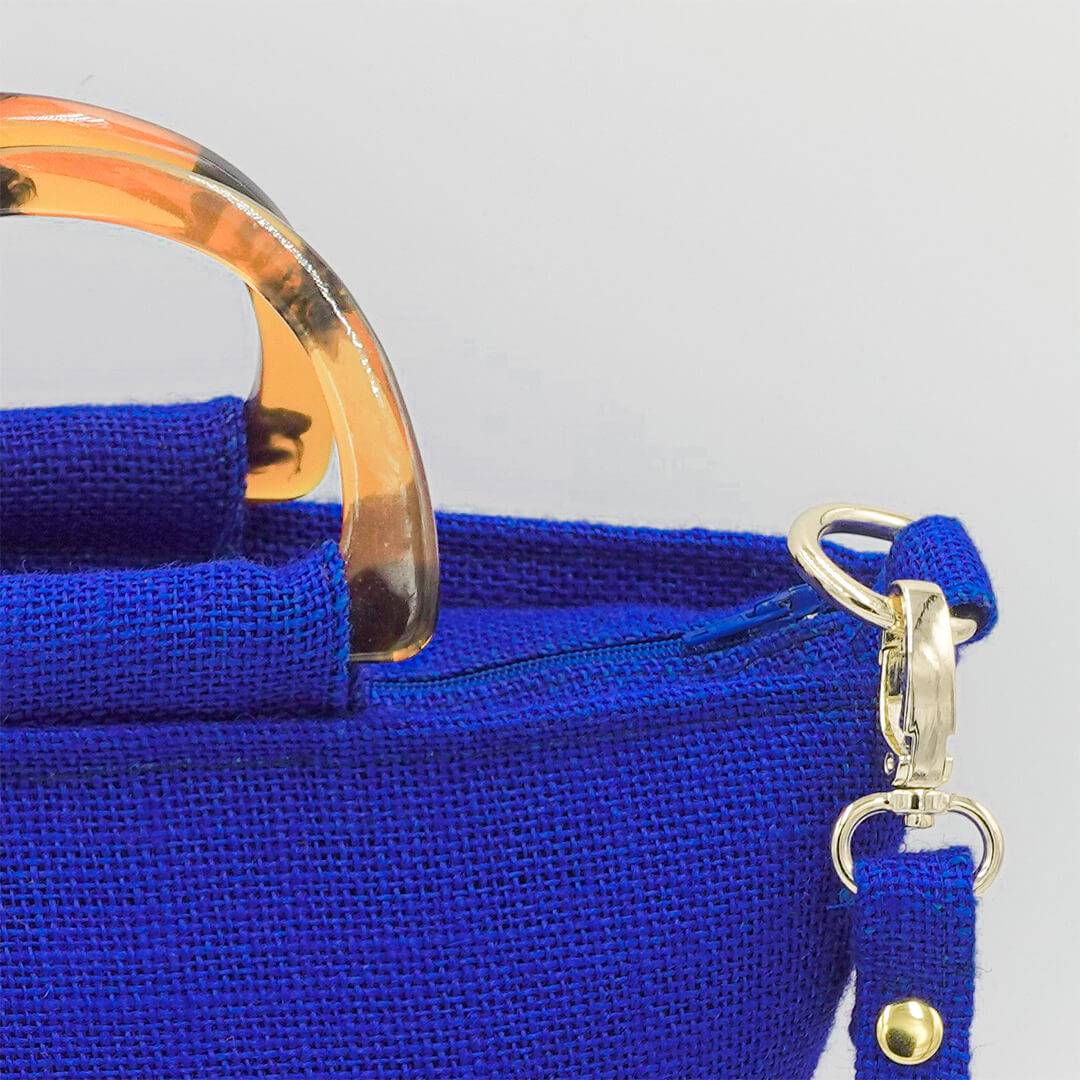 Levisa Blue es el accesorio imprescindible si deseas disfrutar de comodidad y estilo a lo largo del día. Gracias a su correa ajustable, puedes adaptarlo según tus preferencias, y sus asas de resina de alta calidad le dan un toque elegante si lo que quieres es llevar una estética más sofisticada como bolso de mano. Otro elemento para destacar es su interior en tela de raso con el que el yute encuentra su equilibrio perfecto. Enamórate de la versatilidad que ofrece Levisa Blue, ideal para cualquier ocasión.