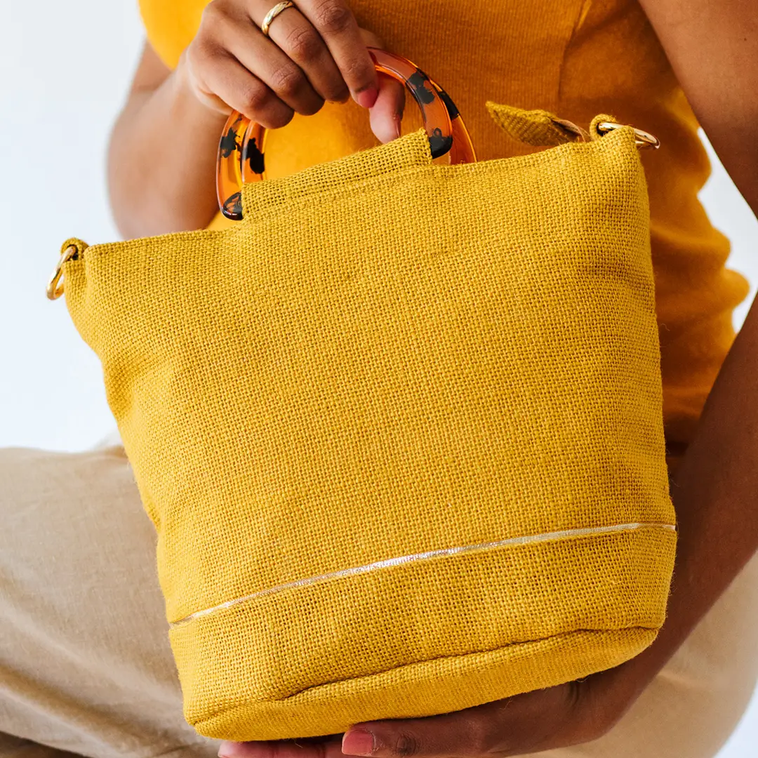 Nuestro bolso de yute Levisa Mustard, es sin duda alguna el compañero perfecto para llevar todo lo que necesitas y más. Su cuidadosa elaboración en tejido de yute teñido con tintes naturales le brinda un aspecto elegante y único. El Yute realizado a base de fibras vegetales gruesas e históricamente empleado como un producto de carga por su fortaleza, se interpreta hoy en múltiples artículos como es el caso de este bolso. Su estructura abierta, de entramado sencillo y transpirable, se degrada de manera natural apostando por la responsabilidad ambiental en cada ejemplar. Además de ser sumamente práctico, su entretela de calidad asegura que siempre mantenga su forma. Descubre la combinación perfecta entre estilo atemporal y comodidad en este increíble bolso. [/one_second]