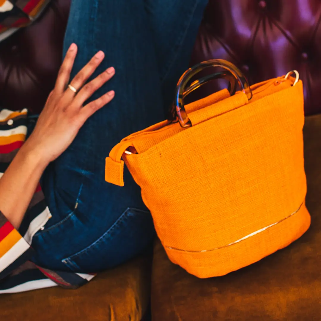 El bolso Levisa Orange es perfecto para complementar tus atuendos. Su diseño minimalista y elegante te permite combinarlo con cualquier estilo. Está fabricado de manera artesanal. Con tela de yute en su exterior, tejido de raso en su interior, una entretela de calidad, asas rígidas de resina y una larga correa ajustable para asegurarnos su perfecto estado durante años, el bolso Levisa Orange es ideal para llevártelo a todas partes.  ¡Prepárate para deslumbrar con este bolso que combina estilo y utilidad en una sola pieza durante todo el verano!