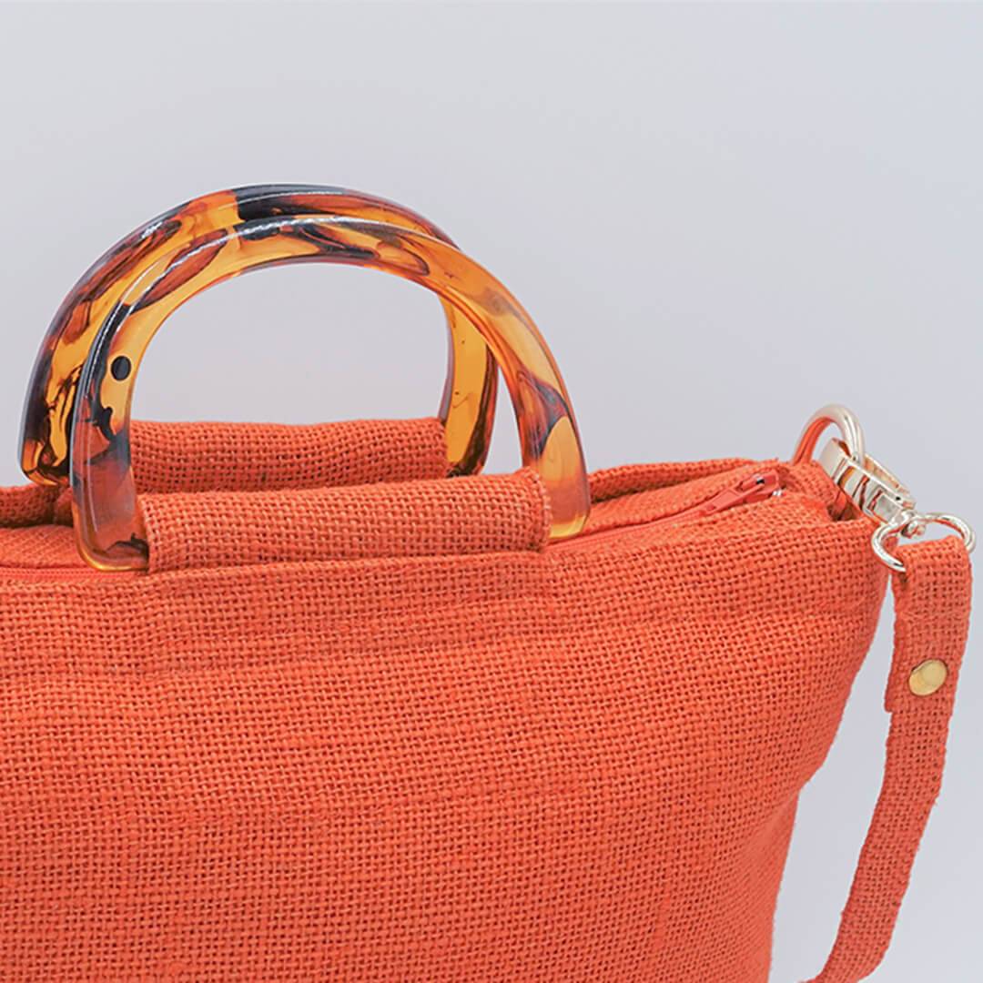 Detalle de asas de resina natural, Levisa Orange bolso mediano para mujer.