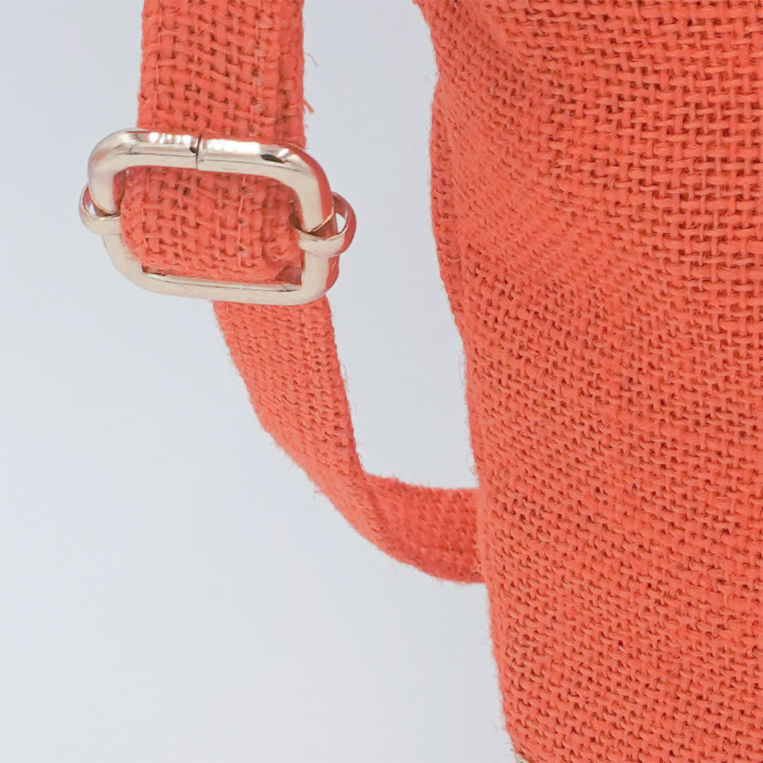 Detalle de la tela arpillera, bolso Levisa naranja para mujer.